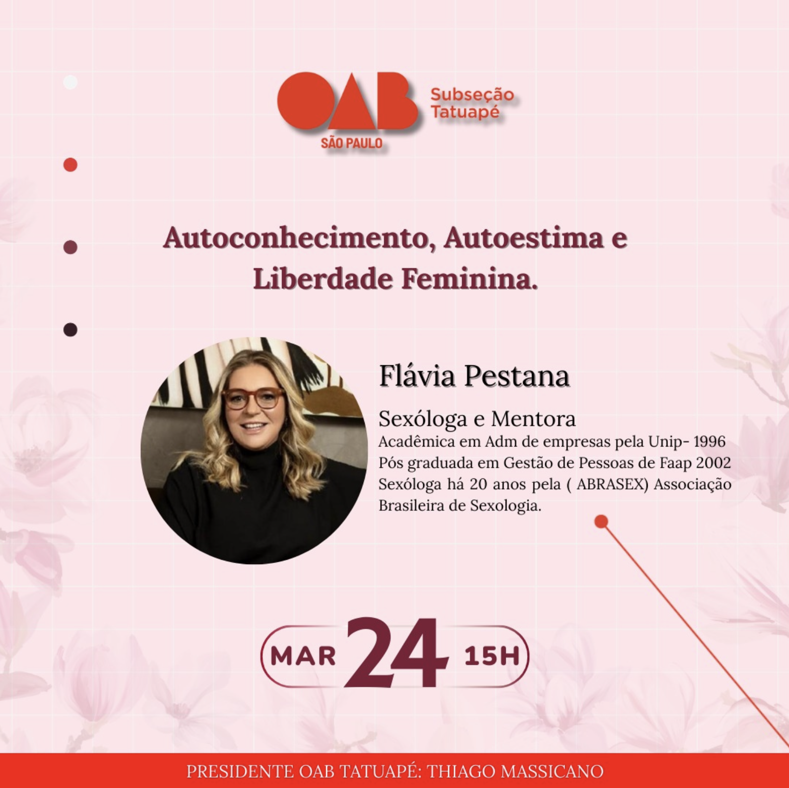 - 🔹 Palestra “Autoconhecimento, Autoestima e Liberdade Feminina” com a Dra. Flávia