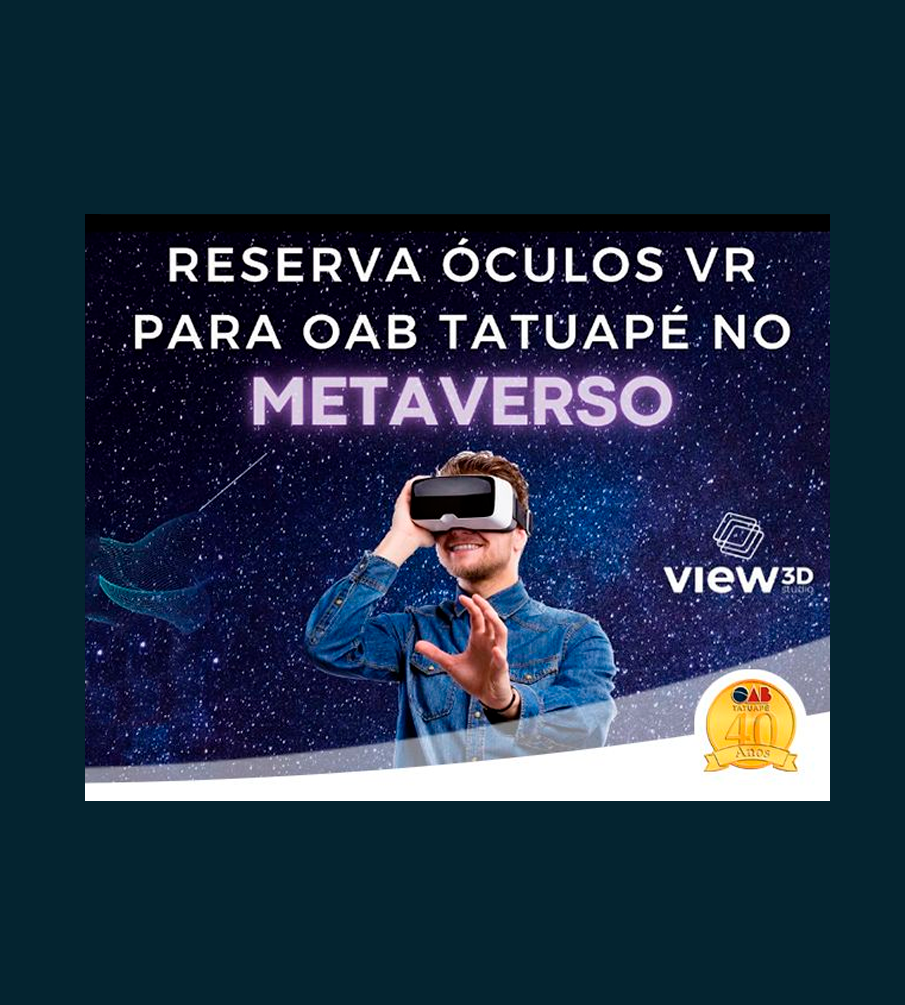 Disponível na sede da OAB Tatuapé gratuitamente reserva de óculos VR para acessar a sede virtual no Metaverso. Agende com seu cliente e saia na frente com essa nova tecnologia.